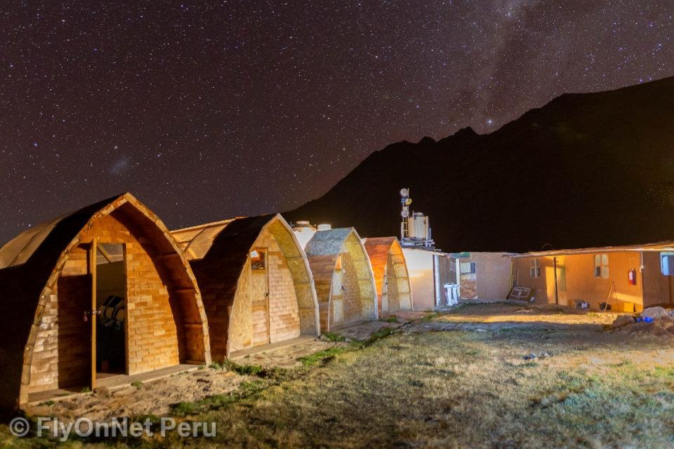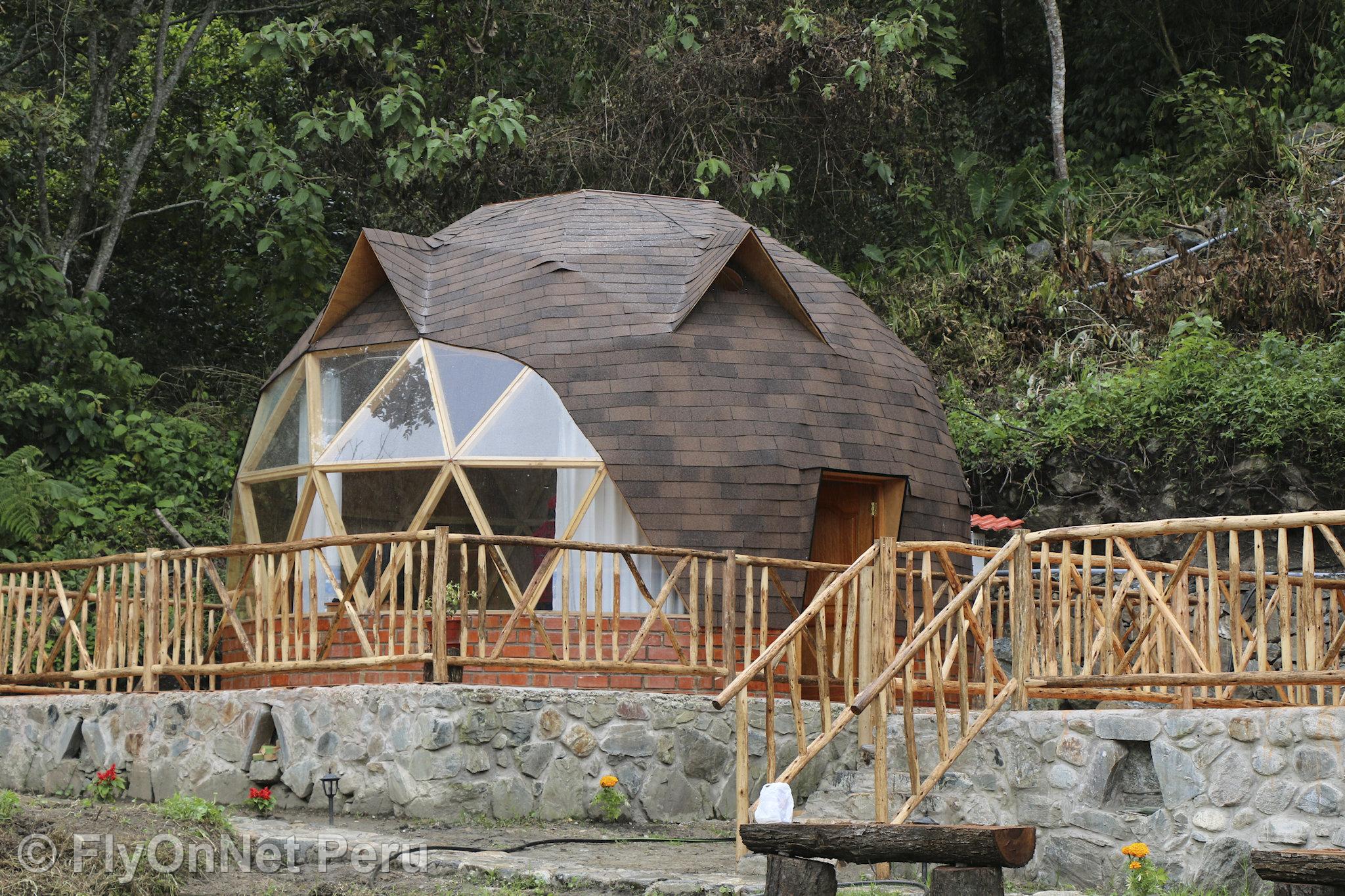The first section of the route, called Pampa Salcantay, passes the left flank of the Humantay Glacier next to the Salcantay Glacier. Here, you reach the trek's highest point by crossing the Salcantay Pass at 4,600 meters. The descent into the tropical valleys of the High Jungle, also known as the Cloud Forest, offers a stark contrast to the mountain scenery. By late afternoon, you arrive at our Majestic Ecolodge in Loreta La Playa, where accommodations include a luxury geodesic dome. For those interested, our Starry Night offers professional stargazing.
